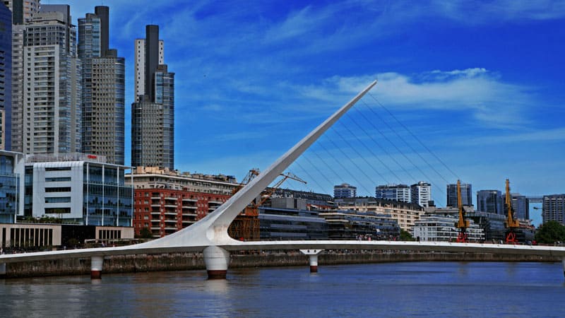 El puente de la Mujer es un puente atirantado de pilón contrapeso diseñado por el arquitecto español Santiago Calatrava en la ciudad de Buenos Aires, Argentina. Es la primera de sus obras en América Latina (seguida por el Museu do Amanhã en Río de Janeiro) y se encuentra ubicada en el Dique 3 de Puerto Madero, en Pierina Dealessi y Manuela Gorriti.